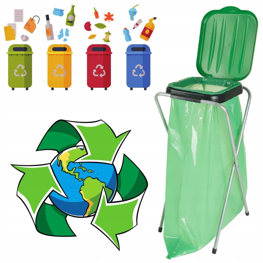 Stojak na Worki 120L do Segregacji Śmieci Stelaż Uchwyt Kosz ZIELONY 74 cm