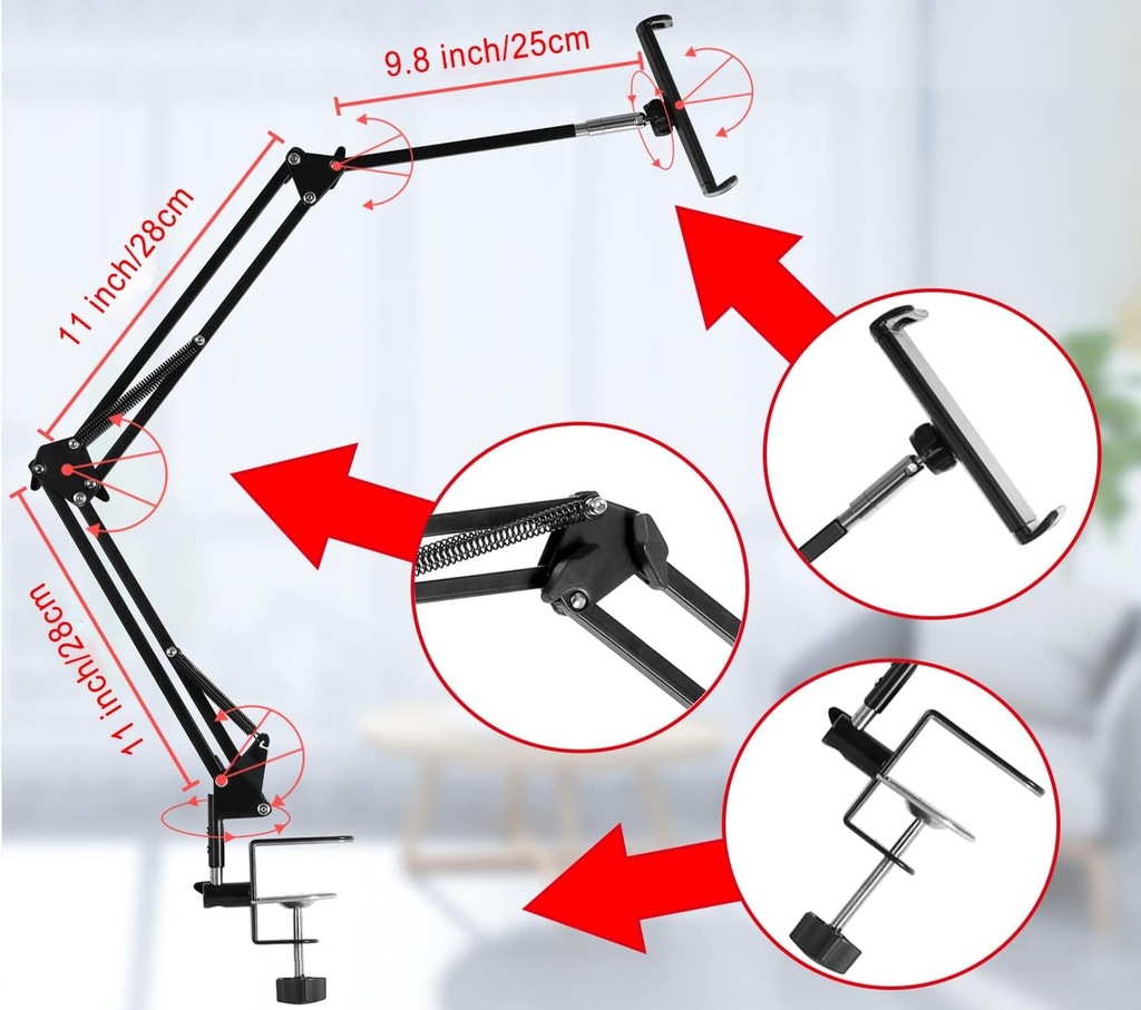 ✅Wytrzymały mechaniczny aluminiowy uchwyt na ramię z 4 super mocnymi sprężynami utrzyma większy ciężar (maksymalne obciążenie: 1200 g). Ciesz się swobodą, oglądając iPad lub iPhone w łóżku zimą, a jednocześnie mając wolne ręce.