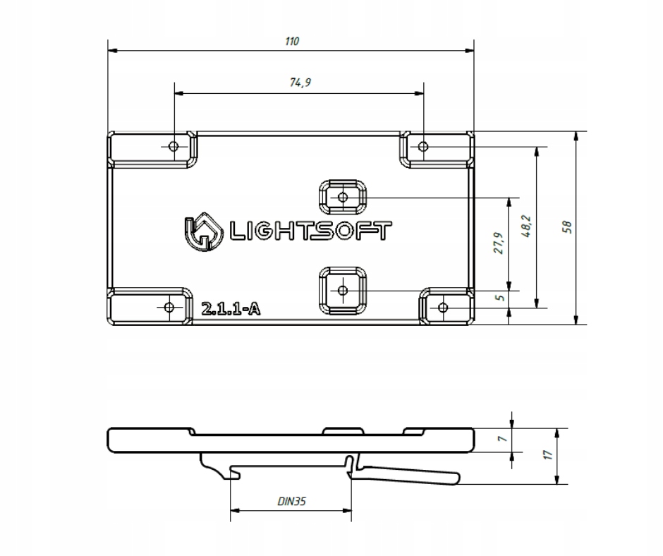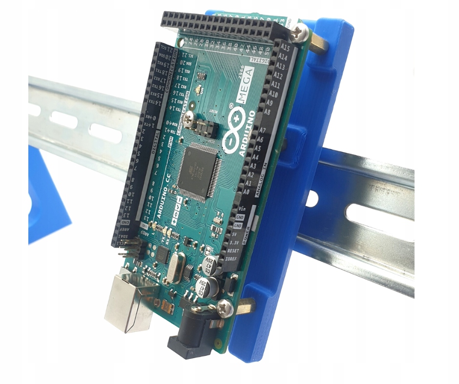 Uchwyt poziomy na szynę DIN umożliwiający montaż inteligentnych modułów automatyki domowej Arduino MEGA.