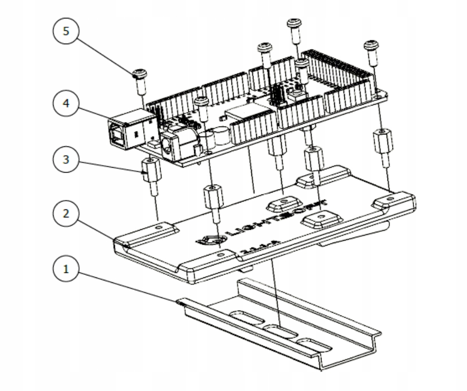 Zestaw nie zawiera szyny DIN (numer 1) ani modułu sterującego (numer 4).