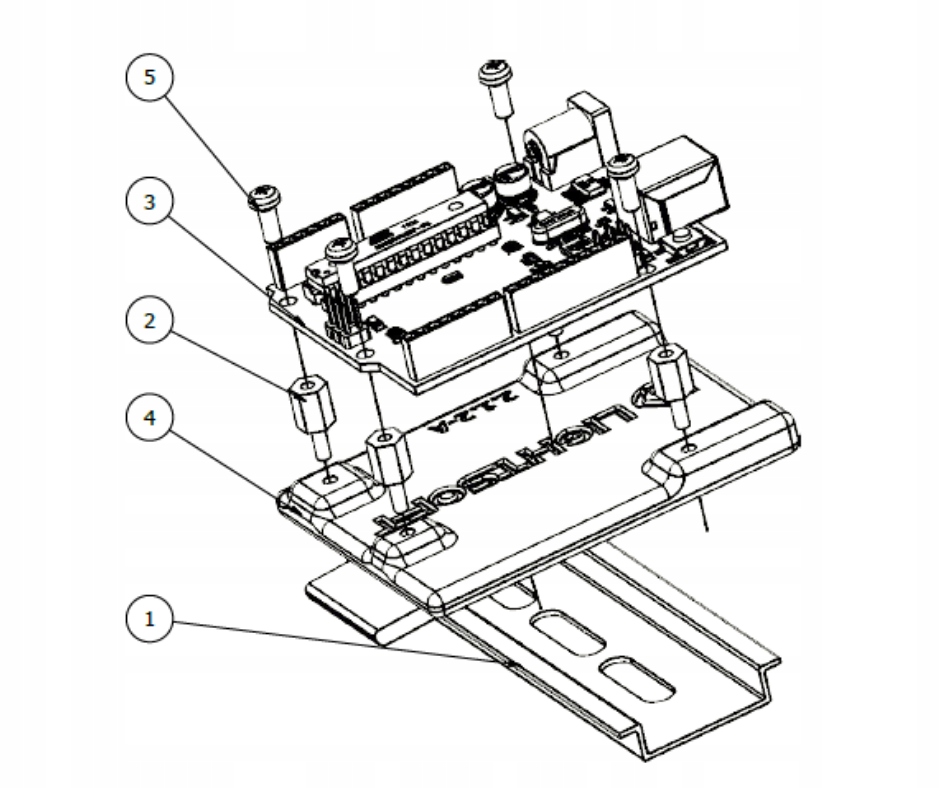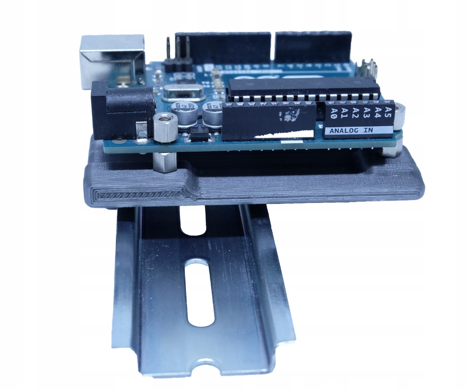 Uchwyt poziomy na szynę DIN umożliwiający montaż inteligentnych modułów automatyki domowej Arduino UNO.