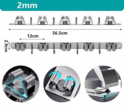 - Wykonany z wysokiej jakości stali nierdzewnej 304, wodoodporny i nierdzewny. Pogrubiona stalowa płyta ścianki uchwytu miotły może wytrzymać ciężar około 60 funtów i nie odkształci się po wielokrotnym pociąganiu. Dłuższa żywotność.