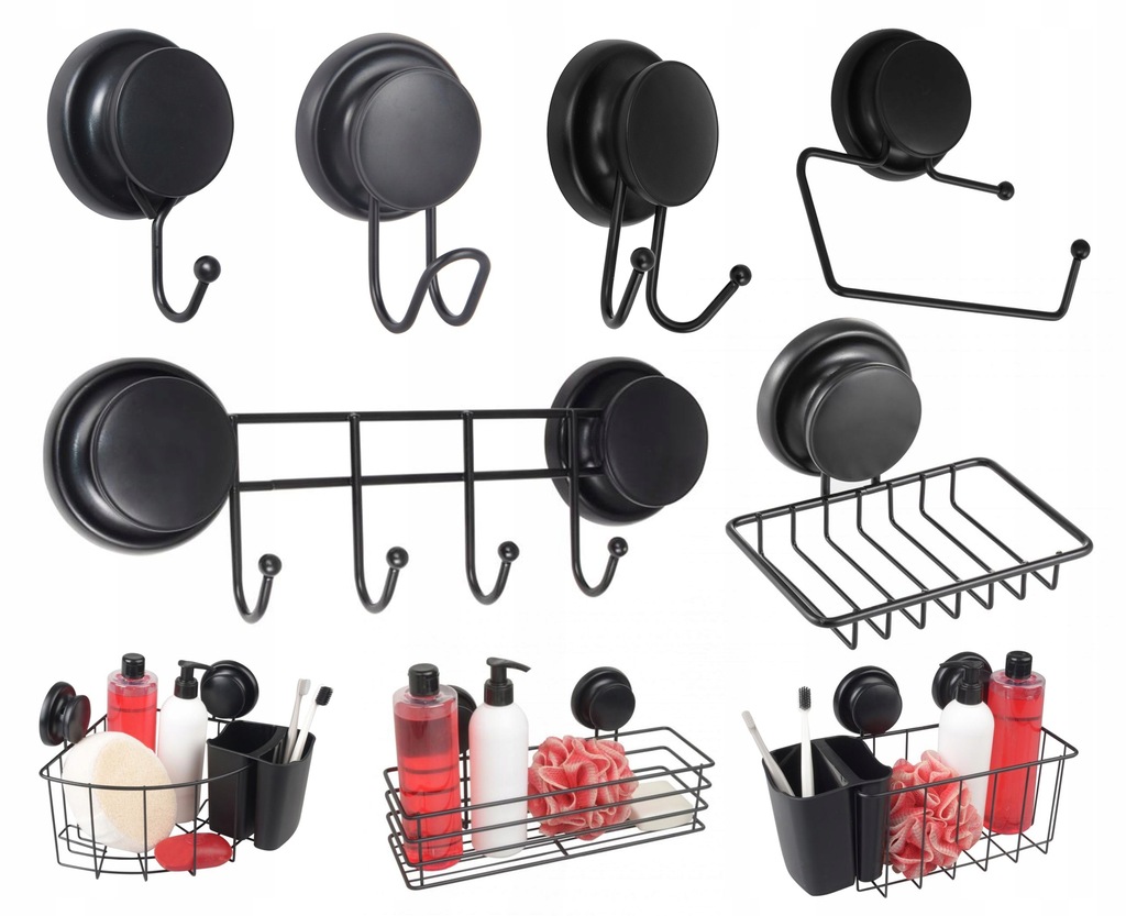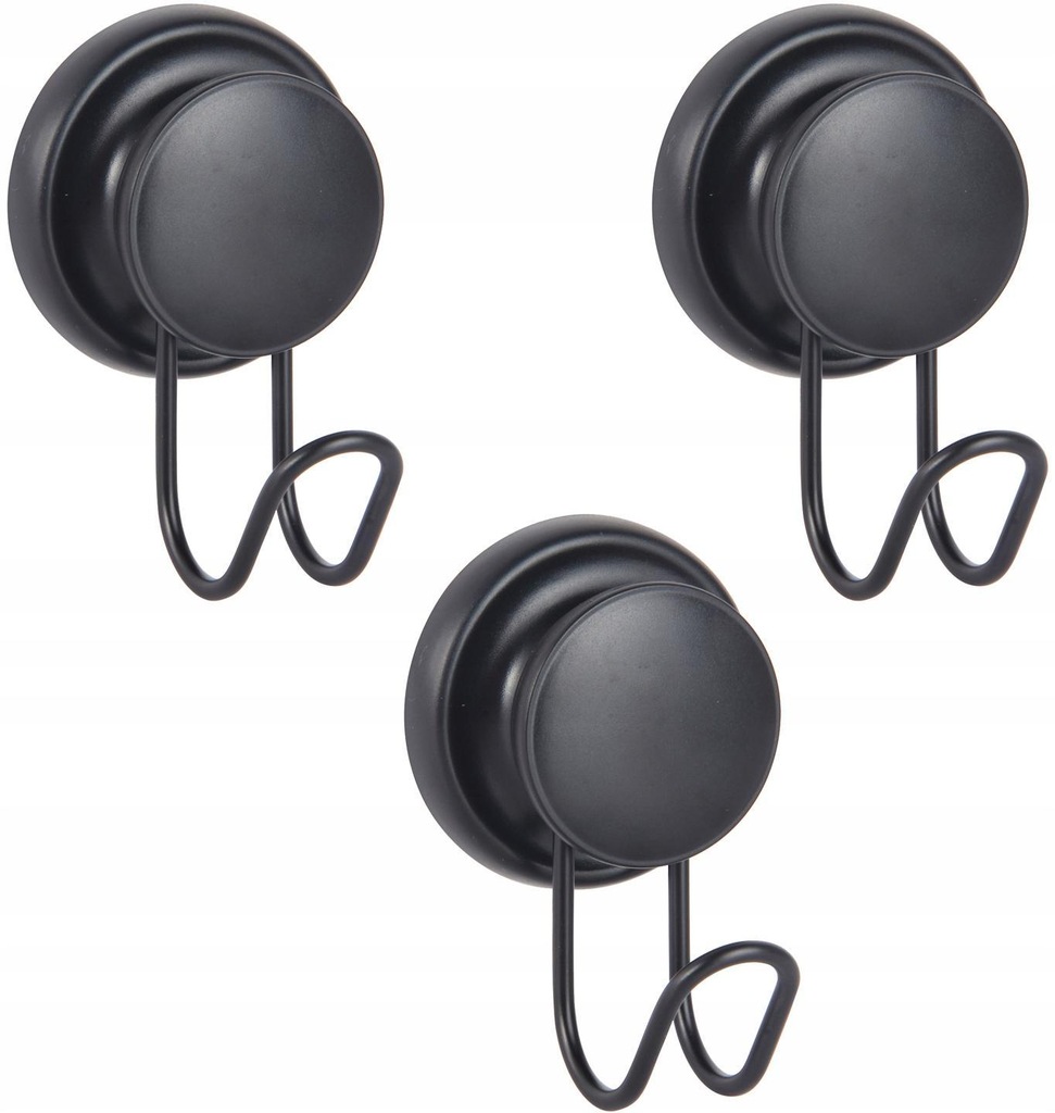 Komplet trzech wieszaków to praktyczny i elegancki dodatek do łazienki wykończonej w nowoczesnym stylu. Odpowiednio wyprofilowane, szerokie haczyki wykonane są ze stali malowanej proszkowo na kolor czarny (mat).