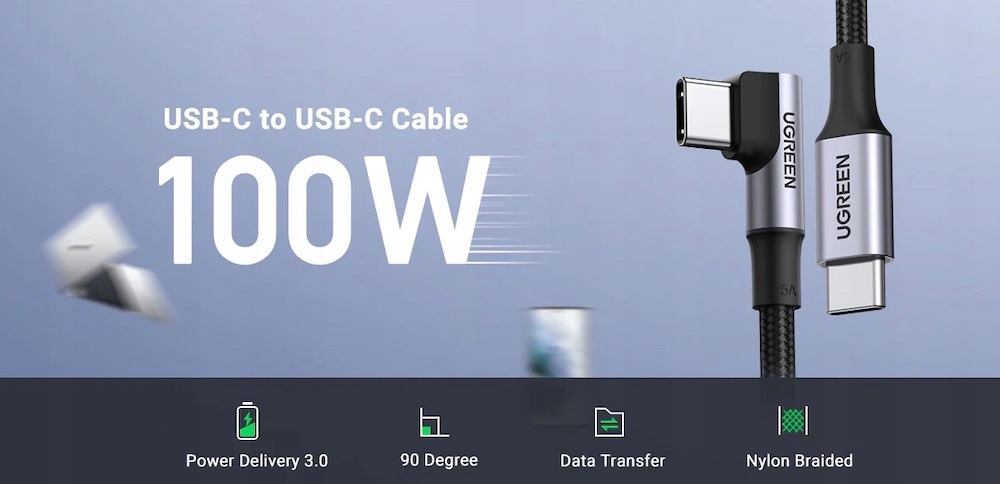 Kabel UGREEN USB-C z kątową końcówką