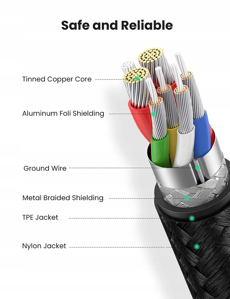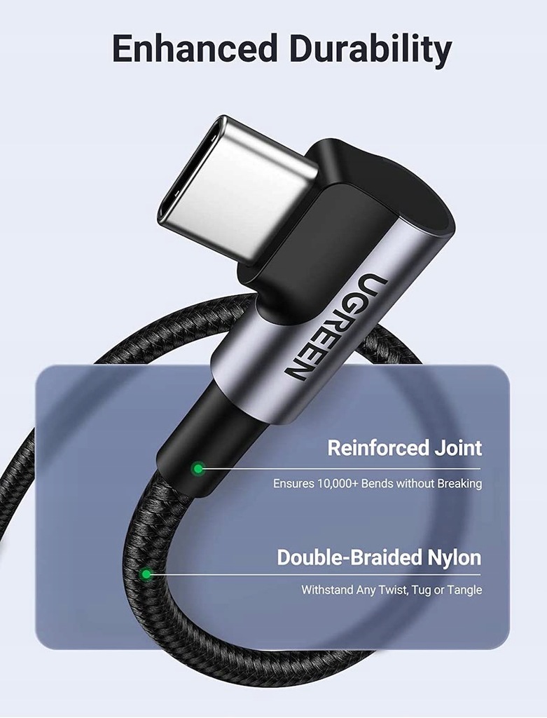 Kabel UGREEN został wykonany z najwyższej jakości materiałów, odpornych na częste użytkowanie, zniszczenie i złamania w najbardziej newralgicznych miejscach.