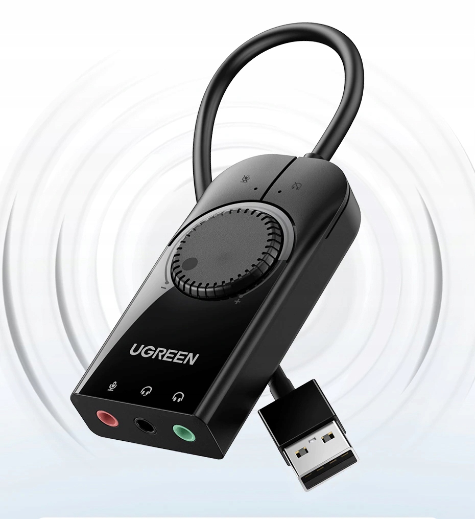 ⚡ Zewnętrzna karta dźwiękowa marki Ugreen sprawdzi się doskonale np. gdy Twój komputer nie posiada wbudowanej karty dźwiękowej lub też, gdy jest ona uszkodzona. Będzie użyteczna również w przypadku, kiedy Twój sprzęt dysponuje jednym tylko gniazdem mini jack, a Ty chcesz np. podłączyć słuchawki i mikrofon niebędące jednym akcesorium.