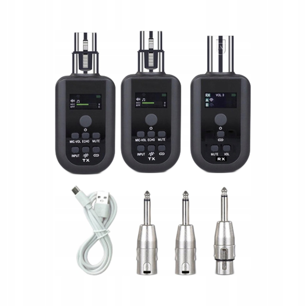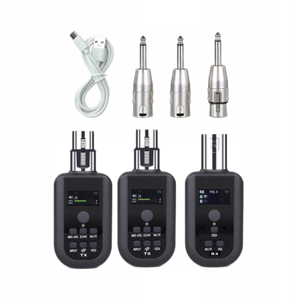 Set B Includes: 1 , 2 Receivers, 3 pieces 6.35mm Adapters, 1 USB charging cable, 1 Manual.