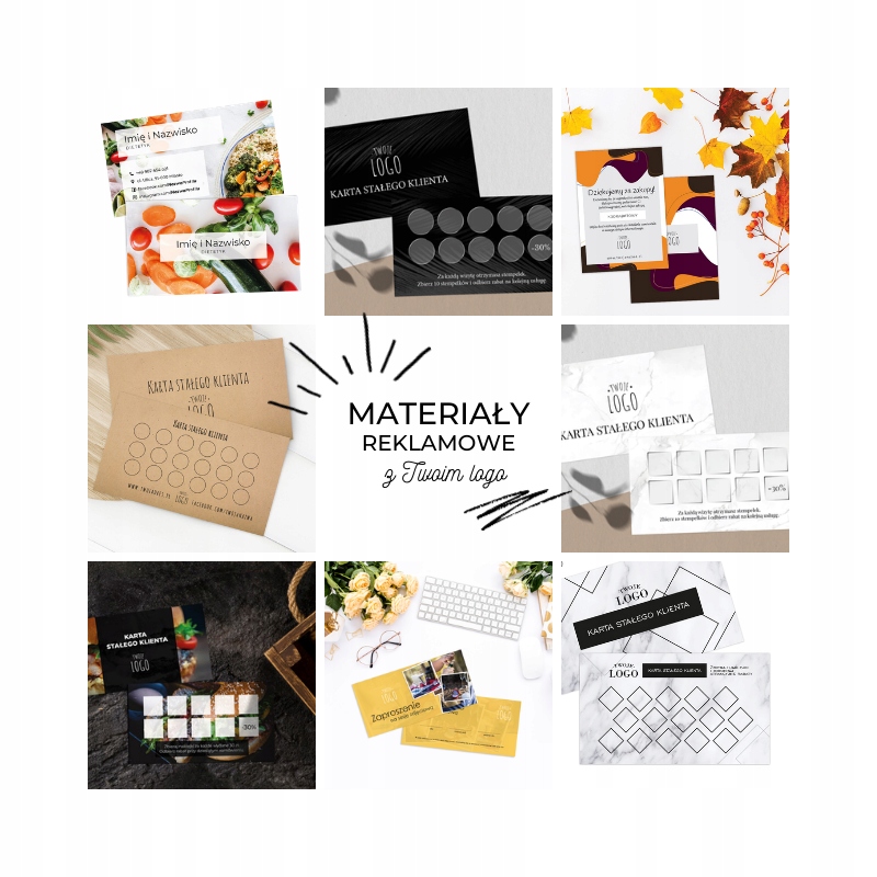 Po złożeniu zamówienia i dokonaniu płatności, w odpowiedzi na e-mail z potwierdzeniem zamówienia prześlij pliki które mają znaleźć się na projektach: logo oraz dane np. adres Twojej firmy, Facebook/Instagram