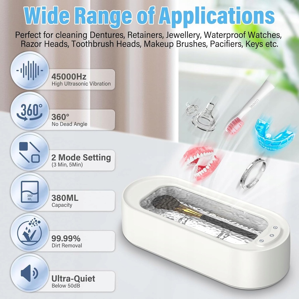 Ultradźwiękowa Myjka 45000Hz – Głębokie Czyszczenie 360°