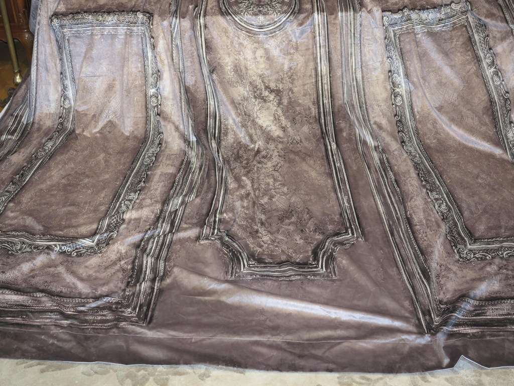 DO STAREJ KAMIENICY- PIĘKNA I UNIKATOWA, BARDZO WYSOKA I SZEROKA KOTARA-ZASŁONA DO PRZEDPOKOJU, HOLU. ZASŁONA Z FOTOGRAFIĄ ZABYTKOWYCH, STYLOWYCH ODRZWI. KOLORYSTYKA CIEMNEGO BEŻU/BRĄZU