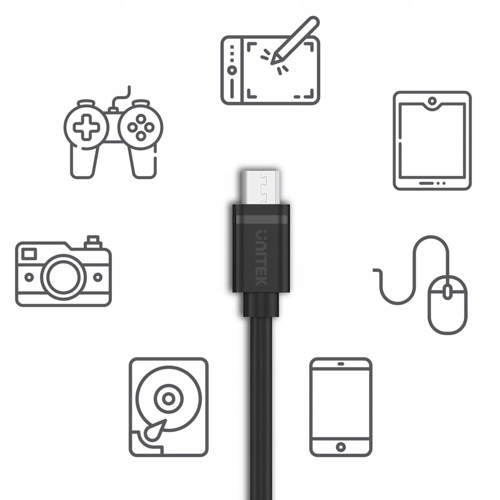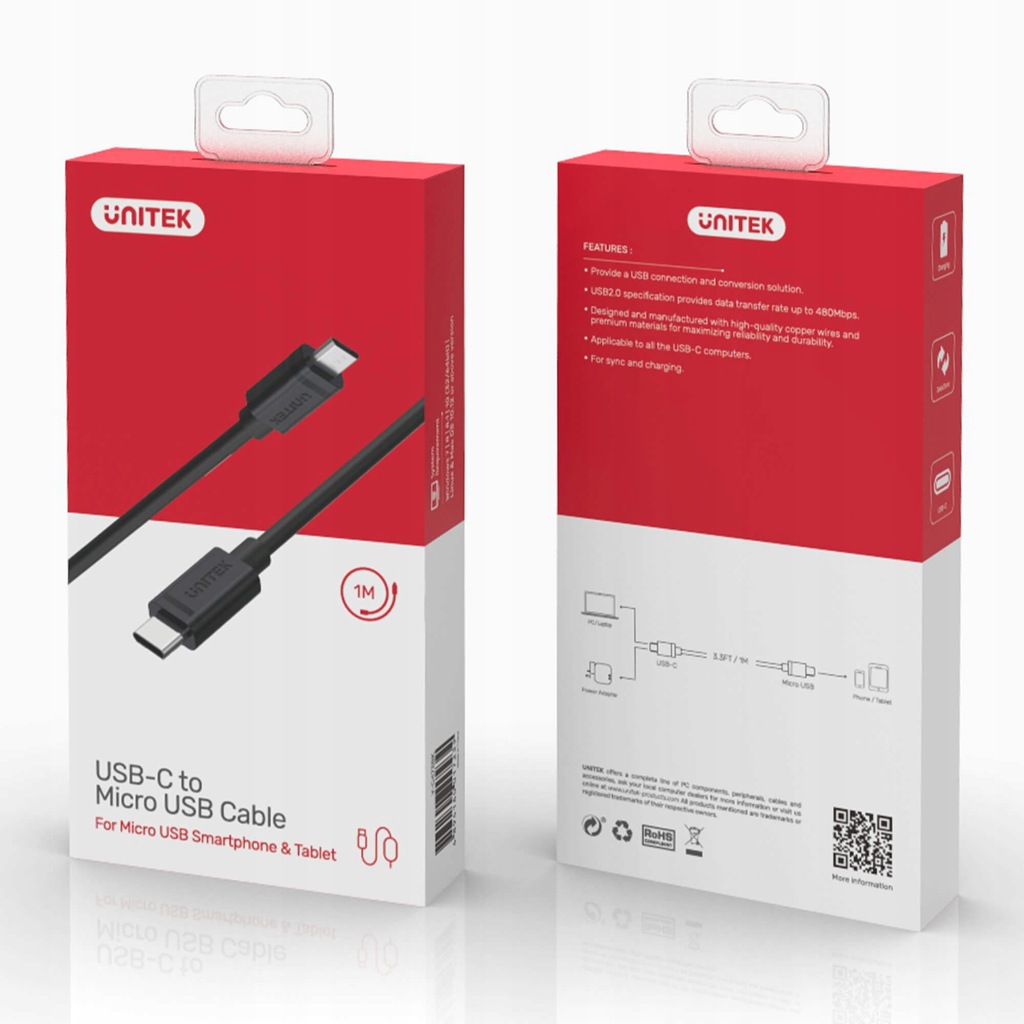 Unitek Y-C473BK to przewód USB Typ-C - micro USB, o długości 1 m, służący do ładowania i synchronizacji szeregu urządzeń takich jak latarki, rejestratory obrazu, akumulatory, aparaty, tablety graficzne, smartphone’y, tablety i wiele więcej. Złącze USB-C jest bezpieczne i wygodne w użyciu – jest symetryczne, czyli nie trzeba uważać którą stroną się je podłącza tak jak to było w poprzednich wersjach USB.