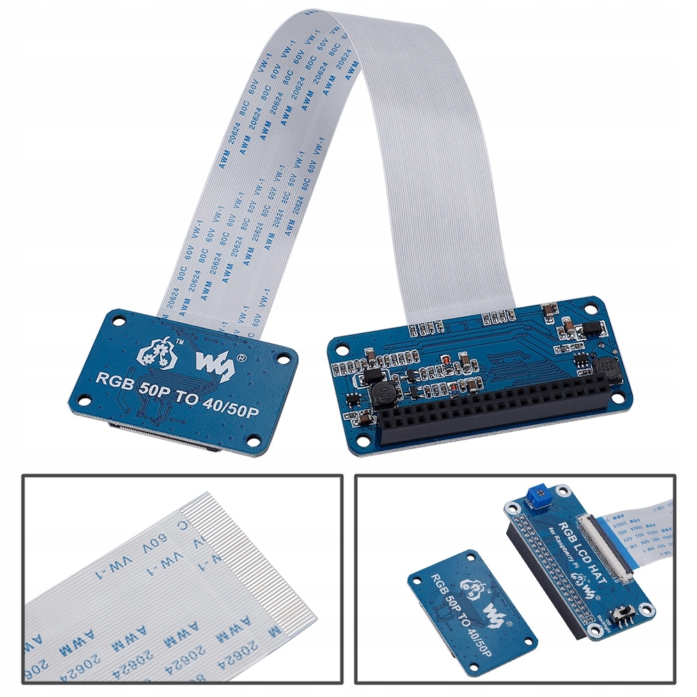 Zestaw sterownika LCD RGB Sterownik DPI 50-pinowa do 40-pinowa płytka przyłączeniowa dla Raspberry Pi