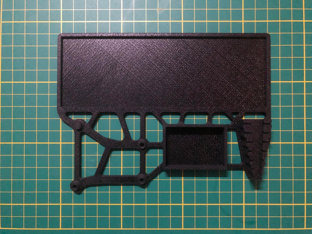 Podstawka jest autorskim projektem, który zdążył wykazać się w warsztatowych warunkach zarówno swoimi praktycznymi funkcjami, jak i ciekawym designem. Wykonana jest z czarnego PLA, charakteryzującego się matowym odcieniem oraz wykończeniem powierzchni w stylu krzywej Hilberta.