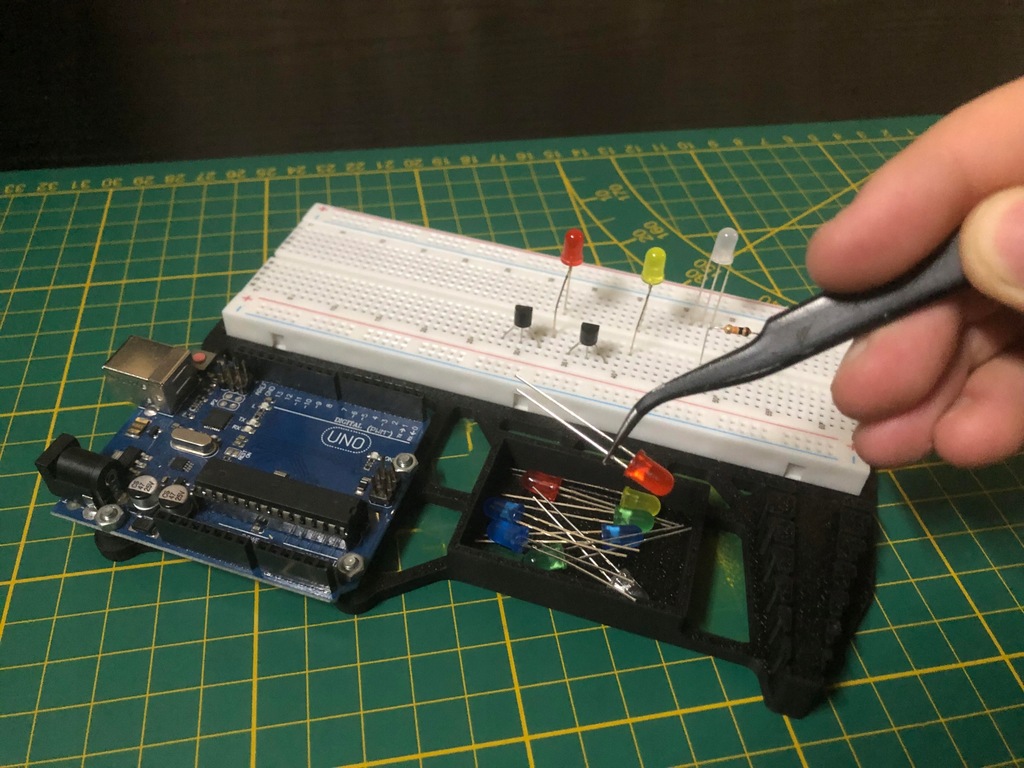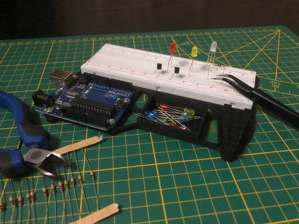 Prezentowany przedmiot umożliwia uporządkowanie pracy z wykorzystaniem platformy Arduino Uno. Łącząca przyjemny dla oka wygląd oraz praktyczne funkcje podstawka pozwoli na sprawne tworzenie prototypowych obwodów bez ryzyka napinania się przewodów między Arduino a płytką stykową. Lepsza organizacja łączeń zarówno zwiększy szanse na prawidłowe uruchomienie układu jak i przyniesie większą satysfakcję z pracy nad projektem.