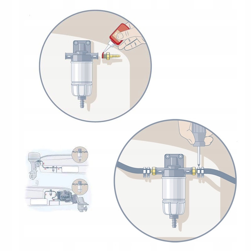 UNIWERSALNY FILTR PALIWA Z SEPARATOREM WODY I ODSTOJNIKIEM. Uniwersalny filtr paliwa z separatorem wody, do montażu pomiędzy zbiornikiem paliwa a silnikiem. Niezbędny element linii paliwowej zasilającej silniki zaburtowe oraz silniki stacjonarne z bezpośrednim wtryskiem paliwa (MPI, EFI, DFI, HPDI, E-TEC i inne). Dzięki niemu woda zawarta w paliwie jest odseparowana. Możemy kontrolować ilość wody dzięki przezroczystemu odstojnikowi. Filtr można stosować jako uniwersalny lub zamiennik oryginalnych filtrów Mercury Quicksilver 35-60494-1, 35-809097