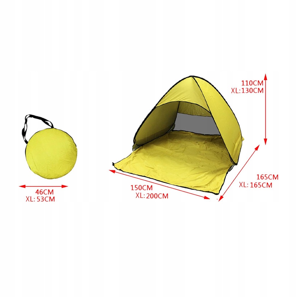 [Rozmiar namiotu plażowego]: Rozłożony rozmiar 165 x 150 x 110 cm (wys.), Średnica 46 cm, waga netto 0,93 kg, może pomieścić 2 osoby dorosłe lub 3 dzieci.