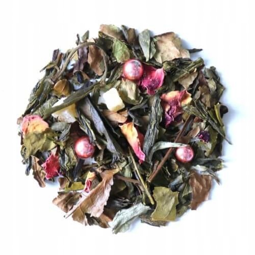 - składniki herbaty: herbata biała, herbata zielona, ananas, aromat, płatki róży, różowe perełki cukrowe