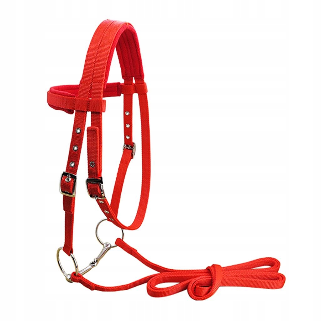Uprząż dla konia Uzda dla konia Zagłówki Odpinana nylonowa taśma wędzidłowa, czerwona L