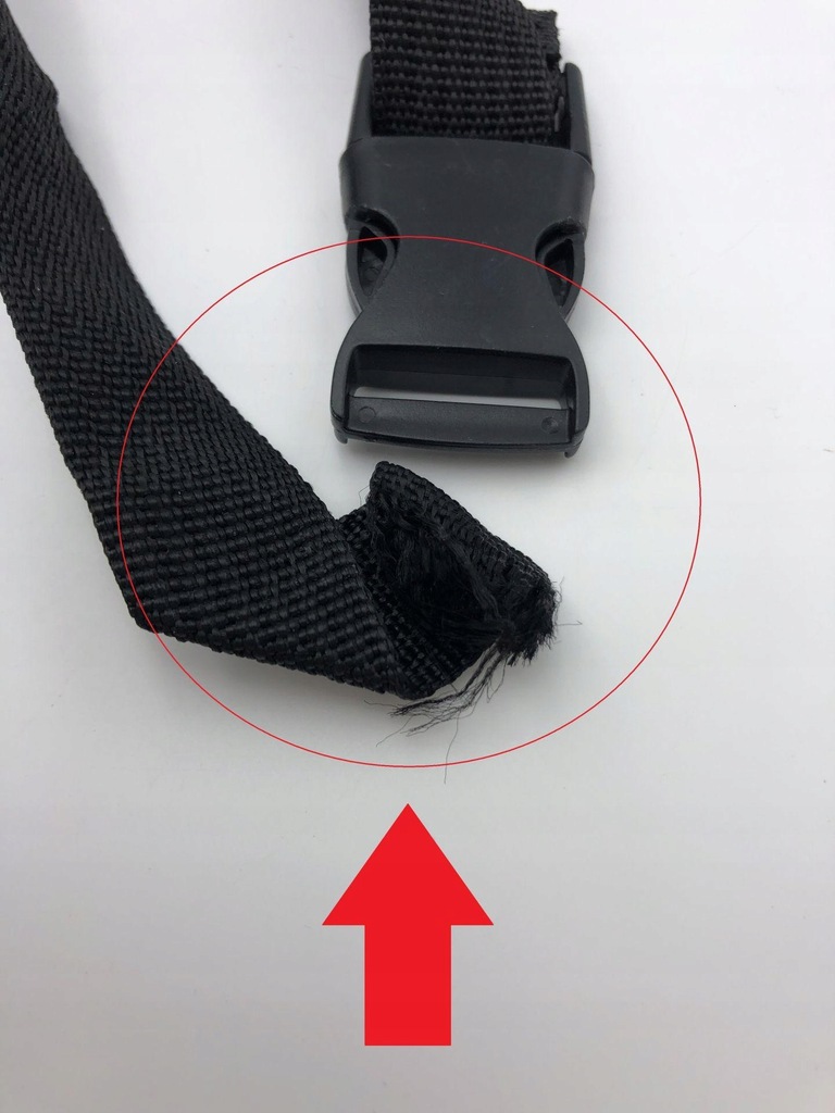 Posiada wadę w postaci rozprucia na pasku-oznaczone na zdjęciu.