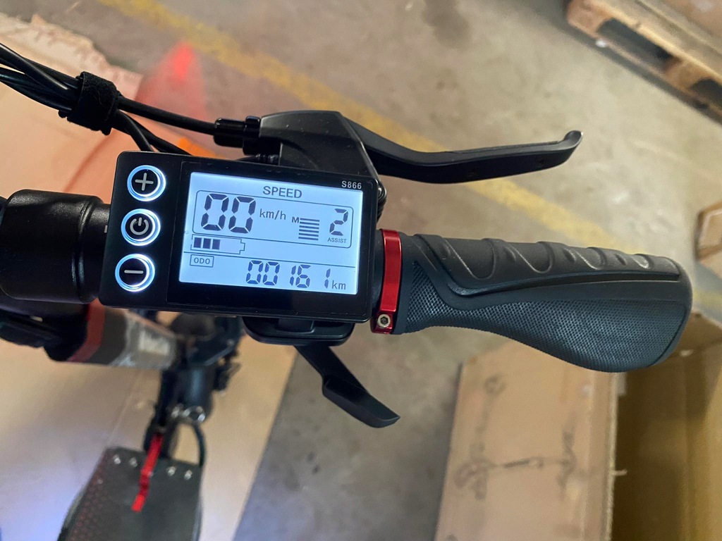 Ekran: LCD, pokazuje informacje o poziomie naładowania, trybie jazdy, przebytym dystansie i prędkości. Bezpieczeństwo: 2 silne hamulce tarczowe (przód i tył). Uchwyty i platforma z powierzchnią antypoślizgową. Osłony błotników przednie i tylne. Opony: 10-calowe, nieprzebijalne. Oświetlenie: 2 przednie reflektory LED o zasięgu do 20 metrów i tylne światło stop. Silnik: 2 x 800W. Bateria: 13Ah, zasięg do 50km na jednym ładowaniu. Szybkość maksymalna: 25km/h. Maksymalne nachylenie: 20°. Waga: Netto: 27kg. Bez baterii: 23kg. Maksymalna waga użytkownika: 120kg. Wielkość kół: 10 cali/25cm. Czas ładowania: 8-9h. Wymiary: Otwarte: 120x60,5x97-128,5cm. Złożone: 120x24,5x43cm. Opakowanie: 121x25x53cm. Zasilanie: 54,6V 1,5Ah. Napięcie: 54,6V. Opony: Bez dętek (Tubeless).