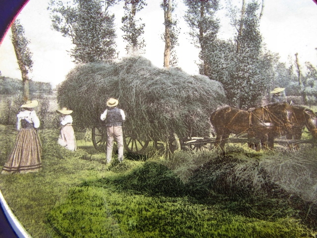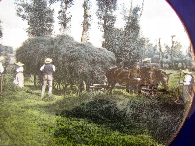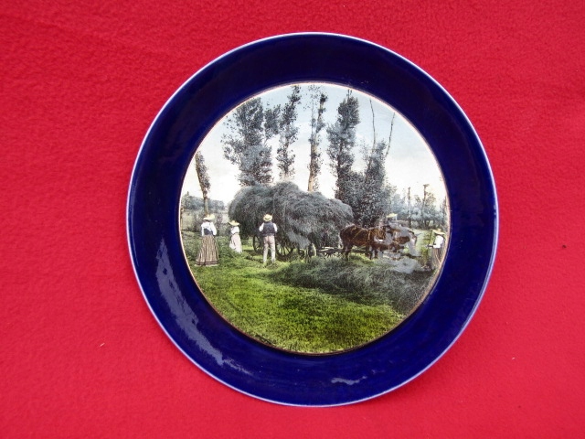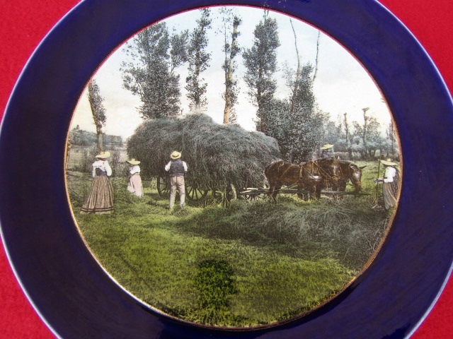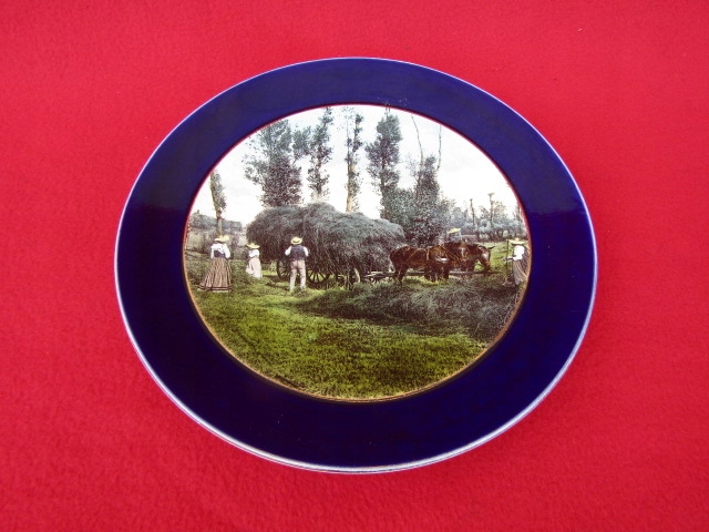 ŚLICZNY TALERZ KOBALTOWY Z MOTYWEM PRAC W POLU