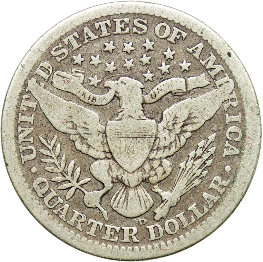 USA, 1/4 dolara (quarter) 1910 D, Barber