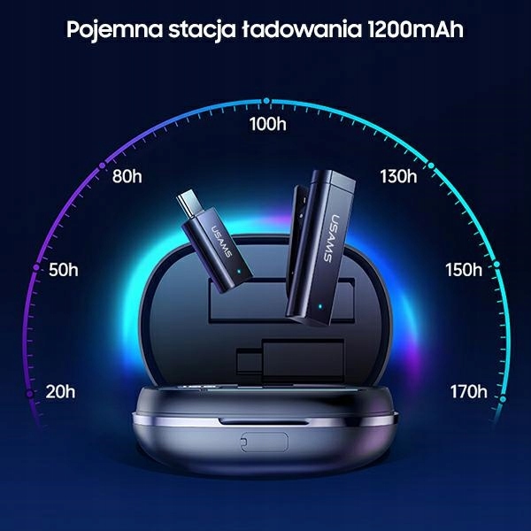 USAMS Bezprzewodowy Mikrofon Krawatowy zapewnia do 8 godzin ciągłej pracy na jednym ładowaniu, co sprawia, że jest to idealne rozwiązanie na długie sesje nagraniowe, transmisje na żywo czy podcasty.