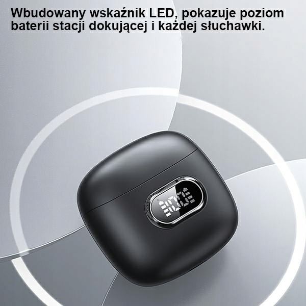Urządzenie posiada wbudowany wskaźnik LED - wyświetla on stan baterii etui ładującego, jak i poszczególnej słuchawki. Jest to niezwykle przydatna funkcja, ponieważ możesz stale kontrolować poziom naładowania urządzenia.