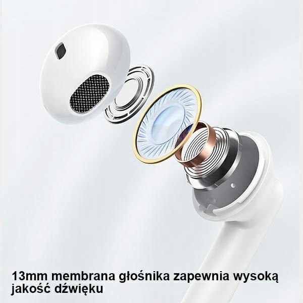 Słuchawki douszne wykorzystujące technologie Bluetooth 5.3. Zaawansowana technologia gwarantuje szybsze połączenie niż w przypadku BT 5.2, silniej przeciwdziała zakłóceniom oraz daje płynny dźwięk. Słuchawki łączą się z urządzeniem na dystansie sięgającym nawet 12m.