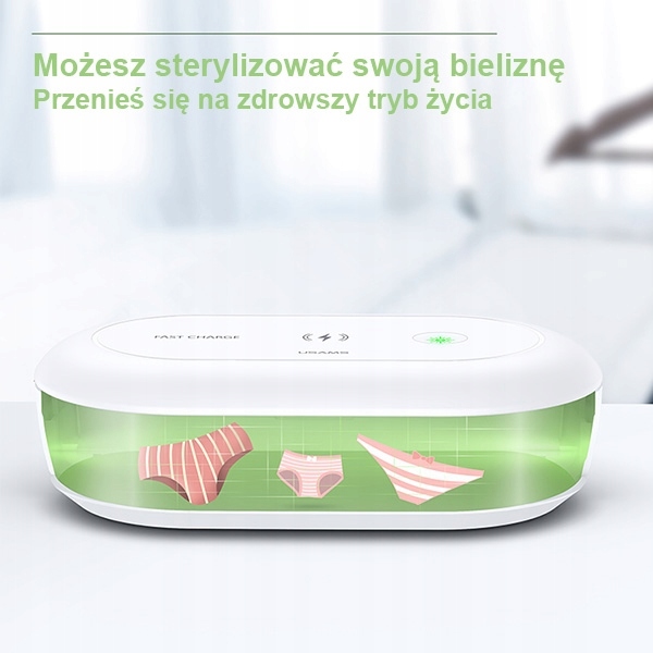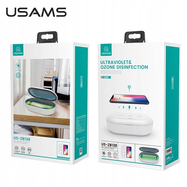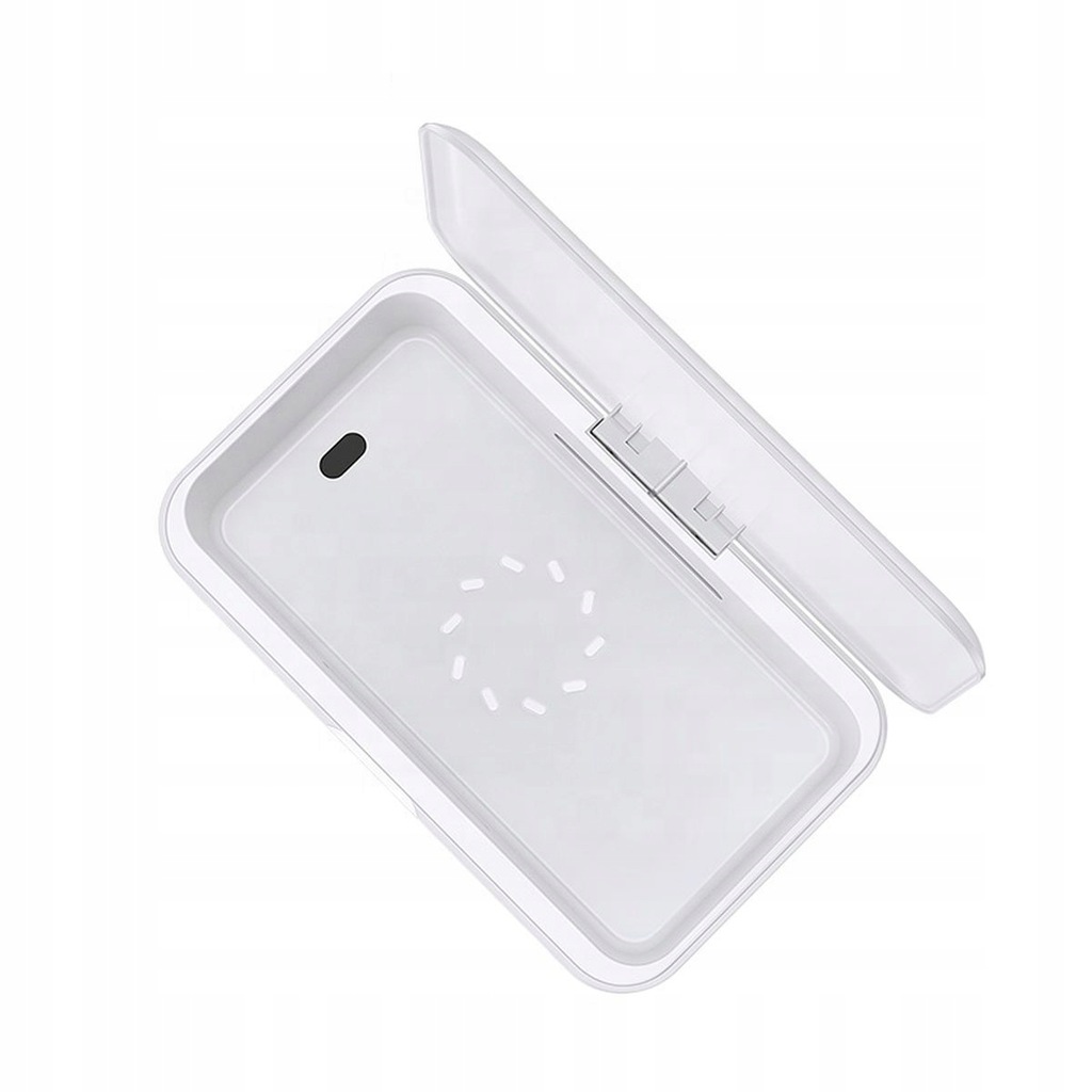 Usams US-ZB138 wielofunkcyjny, mini sterylizator UV z funkcją bezprzewodowego ładowania smartfonów.