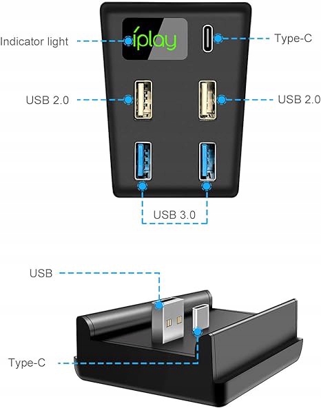 4 PORTY USB I TYPE-C: Ten koncentrator USB do konsoli do gier PS5 oferuje 2 dodatkowe porty USB 3.0, 2 porty USB 2.0 i 1 port Type-C, aby w razie potrzeby rozszerzyć porty konsoli do gier.