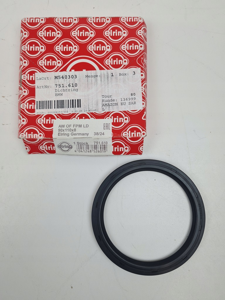 Uszczelniacz wału korbowego ELRING 751.610 to wysokiej jakości pierścień uszczelniający przeznaczony do tylnej części wału korbowego w wielu modelach BMW. Wykonany z trwałego materiału FPM (fluorokauczuk), zapewnia skuteczne uszczelnienie i odporność na wysokie temperatury oraz działanie olejów.