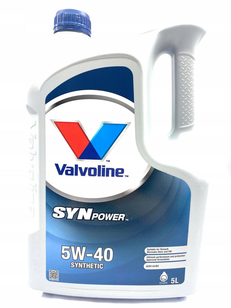 Valvoline SynPower 5W40 5L w pełni syntetyczny olej silnikowy klasy Premium do samochodów osobowych. Najwyższej jakości formuła oleju SynPower SAE 5W-40 zapewnia wysokie osiągi niezależnie od tego, czy jazda odbywa się w trudnych warunkach, czy też potrzebne są wydłużone okresy pomiędzy wymianami oleju.