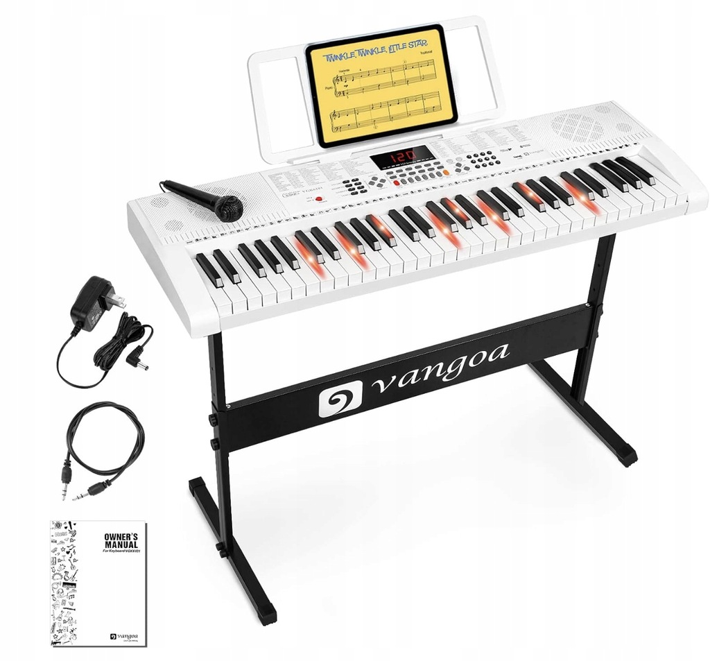 Vangoa klawiatura fortepianowa ze stojakiem 61 podświetlanych klawiszy