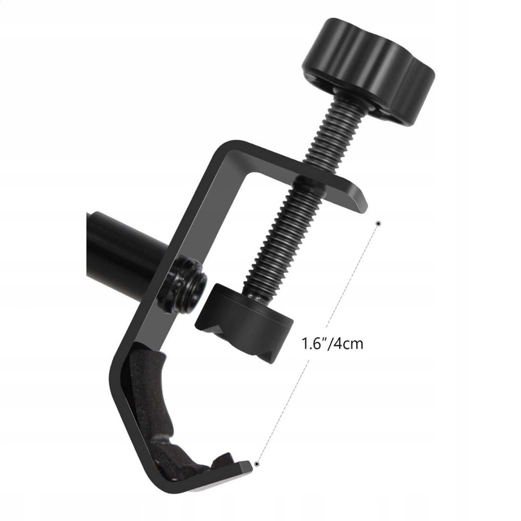 Regulowany zacisk mocuje się bezpiecznie do dowolnego statywu mikrofonowego. Dzięki matom z gąbki i elastycznej gumie filtr można łatwo przymocować bez uszkadzania naszego statywu mikrofonowego.