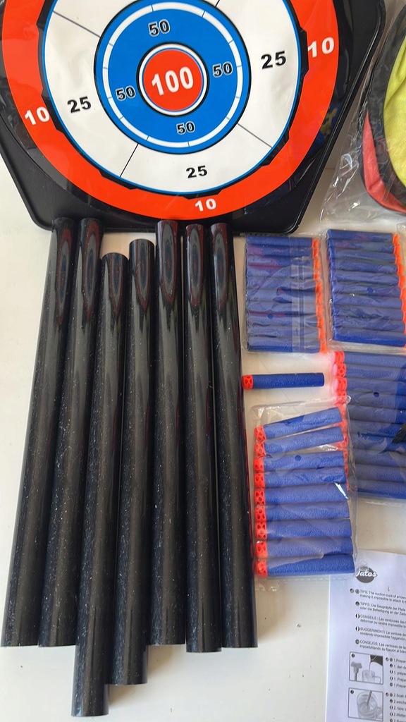 STAN TECHNICZNY: NIEPEŁNY KOMPLET, BRAKUJE ZIELONYCH ŁĄCZNIKÓW DO POŁĄCZENIA RUREK ABY POWSTAŁA TABLICA DO STRZELANIA