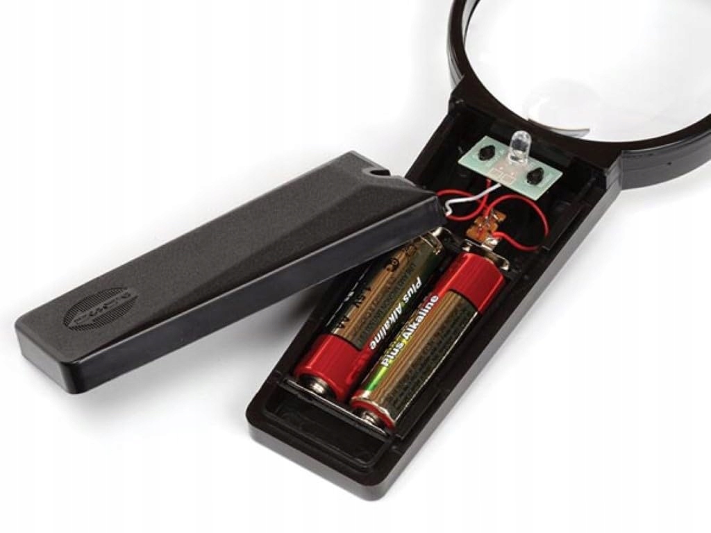 powiększenie: ** soczewka (powiększenie): 2x ** soczewka dwuogniskowa (powiększenie): 4x * dioptria: ** soczewka (dioptria): 4 ** soczewka dwuogniskowa (dioptria): 12 * materiał: - * wymiary: ** szkło powiększające: - ** soczewka (wymiary): Ø 75 mm ** soczewka dwuogniskowa (wymiary): - * waga: - * zasilanie: 2 x bateria 1,5 V AA (brak w zestawie) * kolor diody LED: - * typ LED: - * żarówka: -