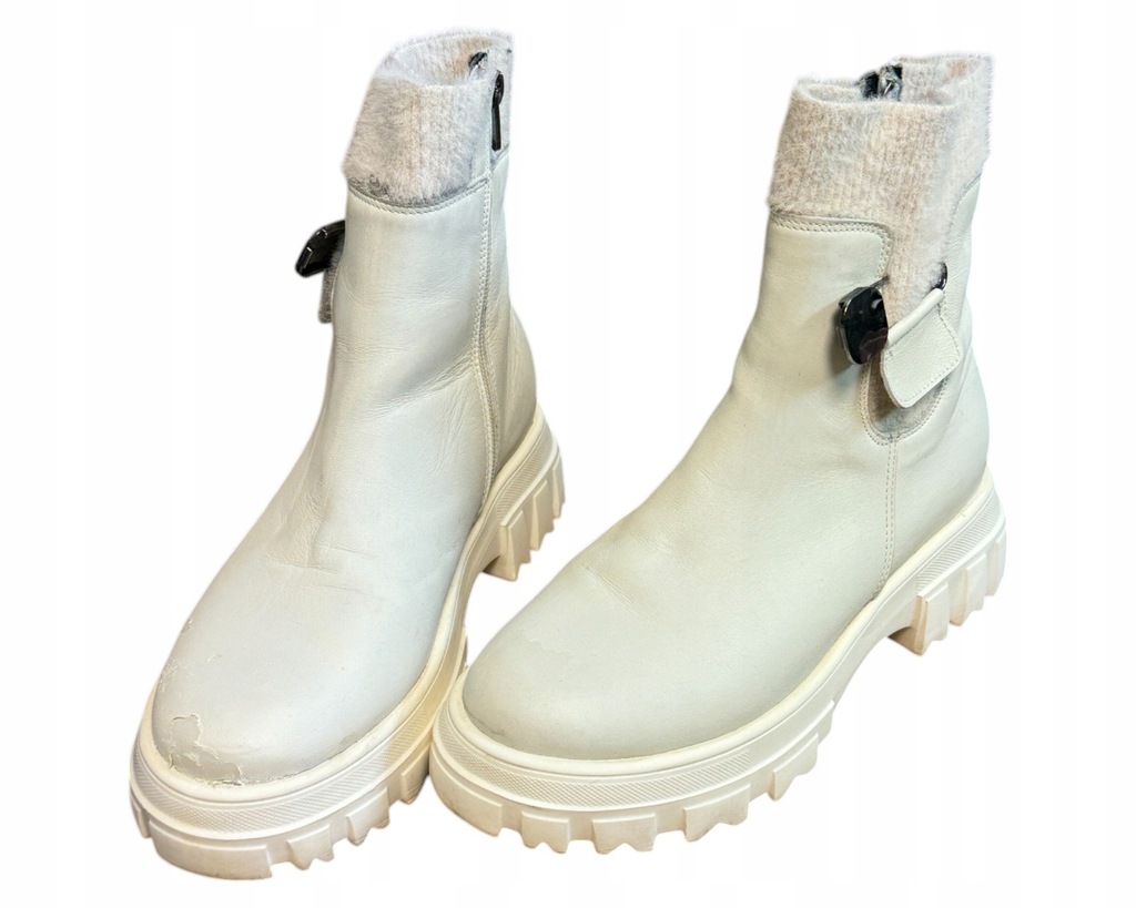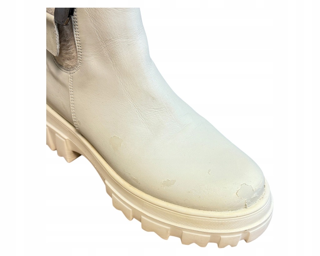 Buty są w dobrym stanie. Posiadają wady na cholewkach (na zdjęciu). Zapakowane w oryginalnym kartonie.