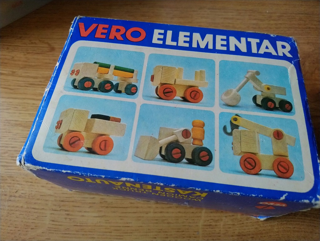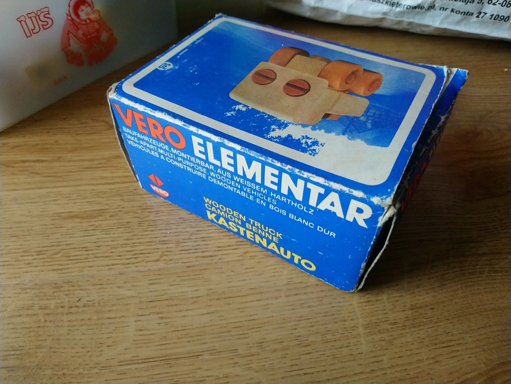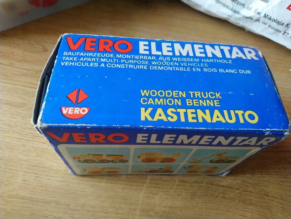 Vero Elementar Kastenauto Stare klocki drewno plastik auto ciężarówka DDR (15096670323)
