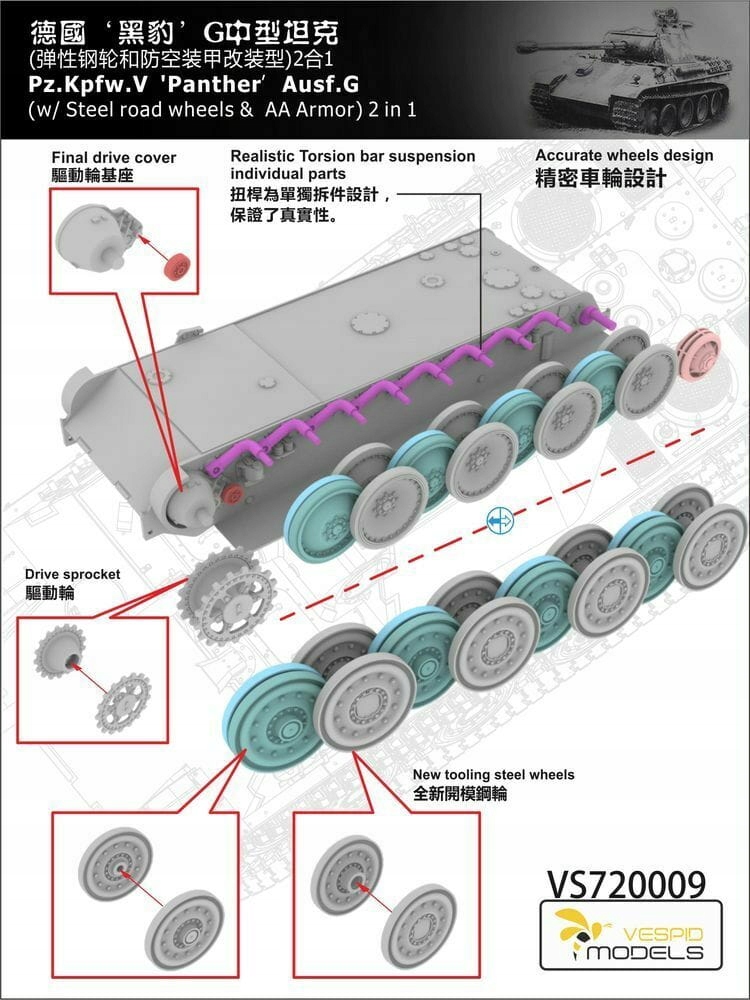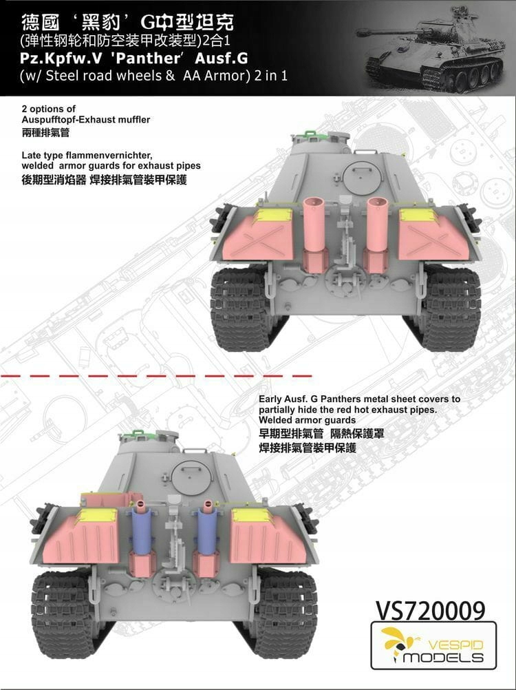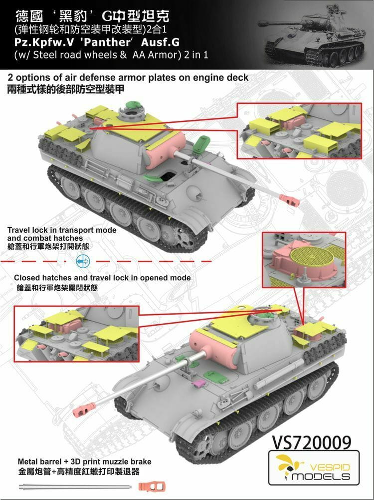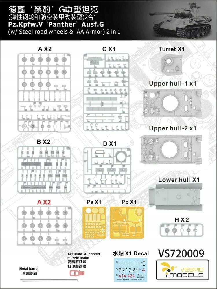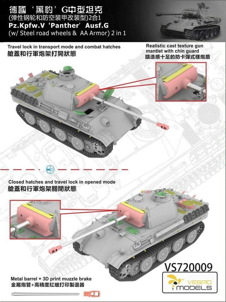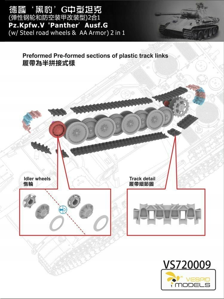 Vespid Models VS720009 - 1:72 Panther Pz.Kpfw. V Ausf. G w/Steel road wheels & AA Armour