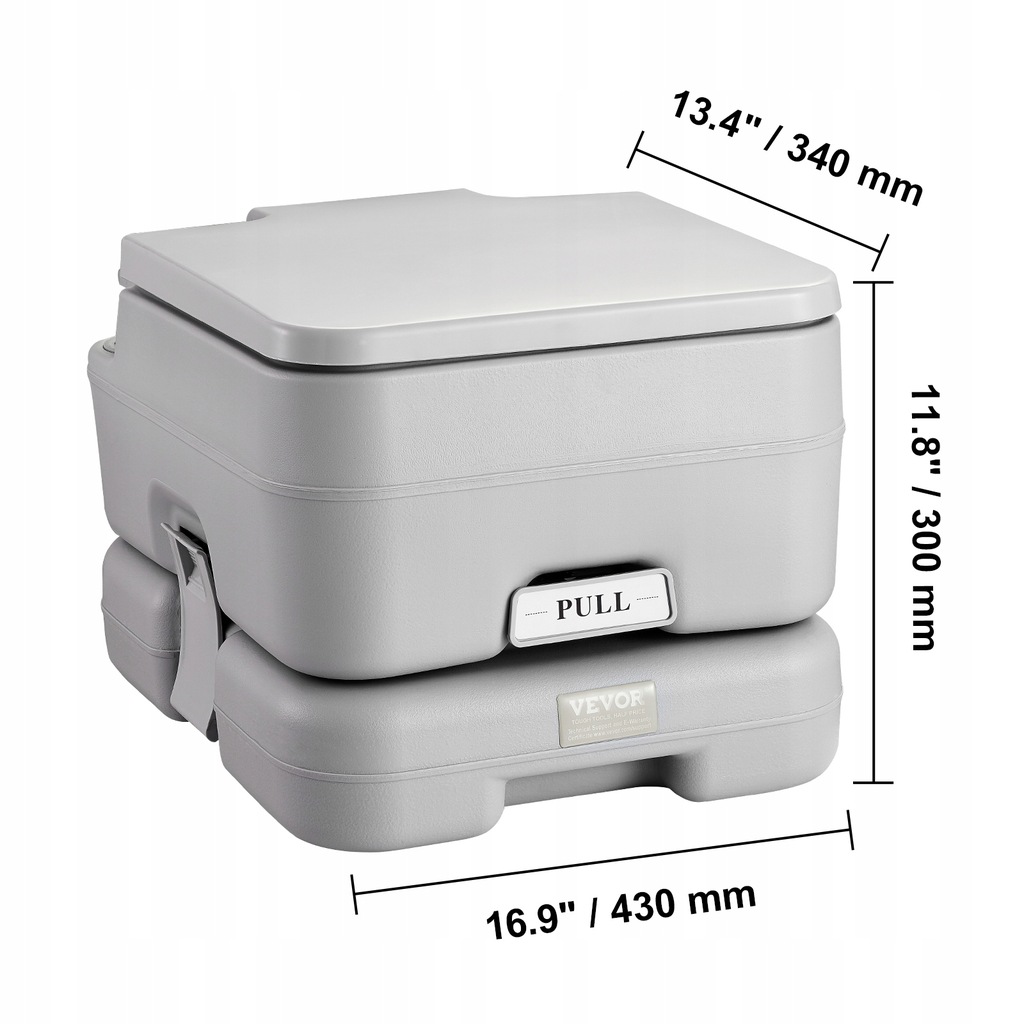 Ta kompaktowa toaleta spłukiwana jest wyposażona w wyjmowany zbiornik na nieczystości o pojemności 3,2 galona i zbiornik do spłukiwania o pojemności 3,2 galona, jest bardzo przenośna i nadaje się do użytku na zewnątrz lub w podróży. Zapewnia korzystanie z toalety w dowolnym miejscu i czasie.