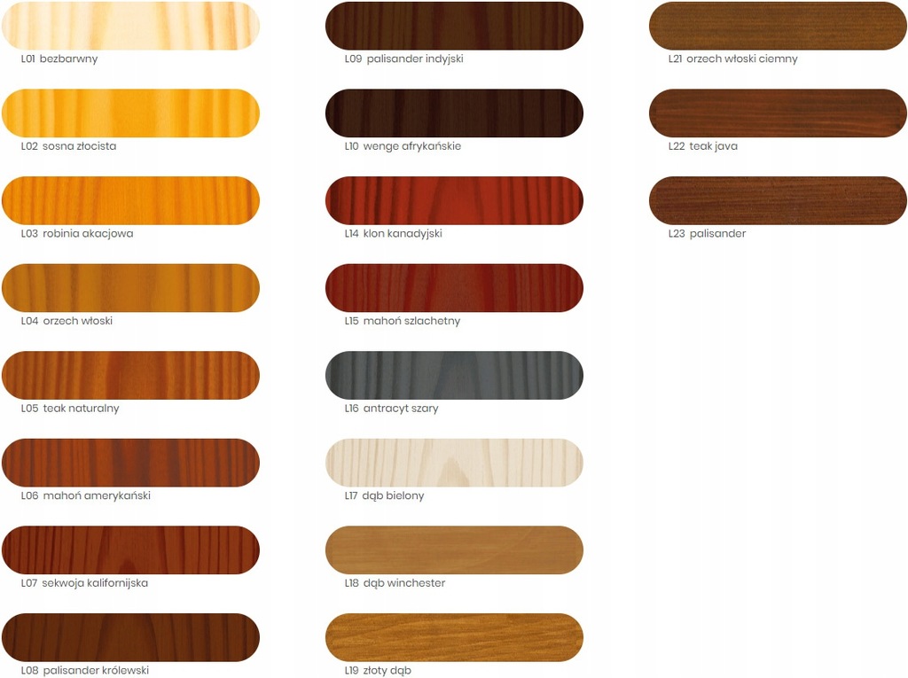 olor: L03 Robinia akacjowa • Pojemność: 2,5 L • Wydajność: do 20 m²/l przy jednokrotnym nakładaniu w zależności od zastosowanego drewna