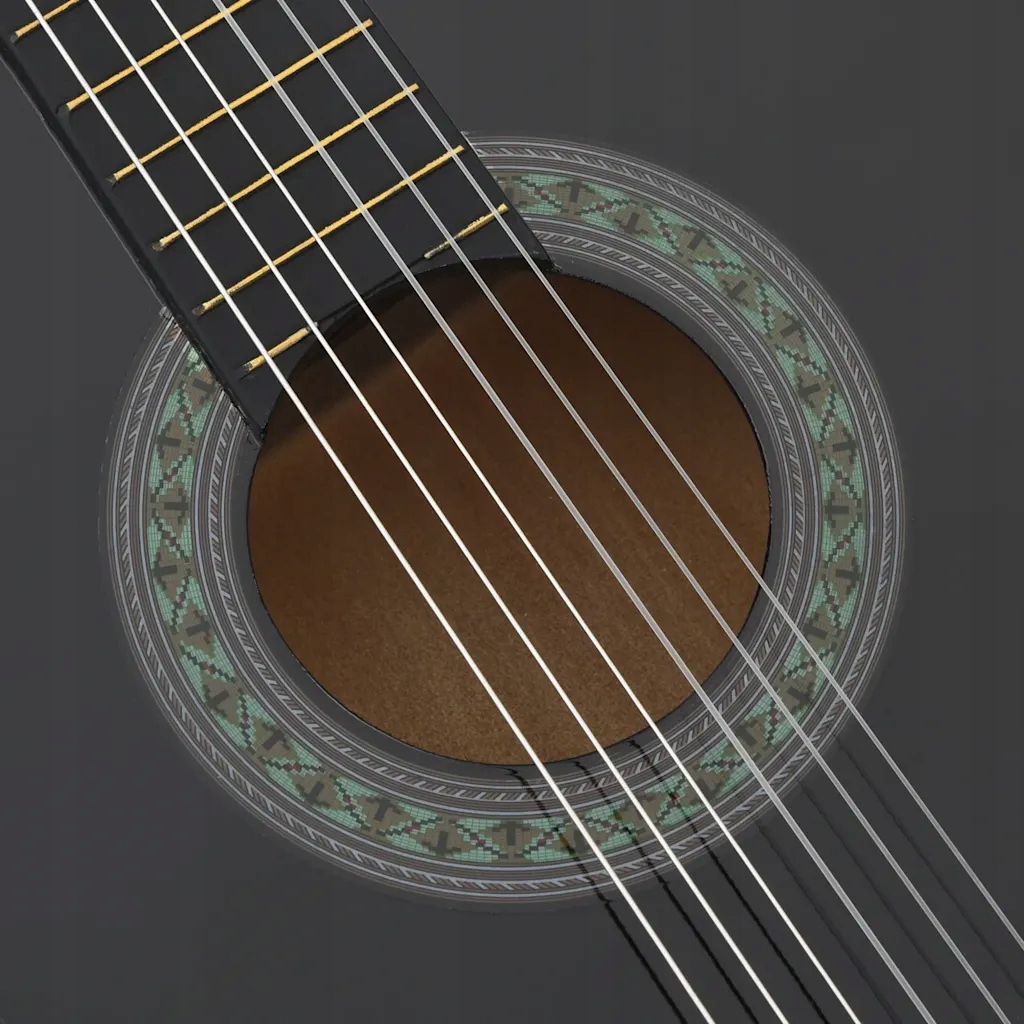 Nasza gitara klasyczna to świetny instrument dla początkujących, amatorów i muzyków na każdym poziomie. Oprócz gitary w zestawie znajduje się pokrowiec na gitarę, pasek, kostki, uchwyt na kostki, komplet strun, korbka do strun, kapodaster, tuner chromatyczny i stojak na gitarę. Gitara jest wykonana z litego drewna lipowego z kluczami i podstrunnicą z twardego plastiku. Doskonała jakość dźwięku i piękny, klasyczny design sprawiają, że instrument jest bardzo ceniony. Ta gitara o długości menzury wynoszącej 65 cm ma wszystko, czego potrzebujesz, aby zostać gitarzystą. Tuner pozwala lepiej nastroić struny gitary, a kapodaster dopasować tonację. 3 kostki służą do szarpania strun i można je umieścić w uchwycie. Zwykle służą w zastępstwie palców, ale można też grać nimi i palcami jednocześnie. Korbka do strun to przydatne narzędzie, ułatwiające wymianę strun. Dołączony pokrowiec z paskiem jest idealny dla podróżujących muzyków i ułatwia przechowywanie instrumentu. Dodatkowo możesz umieścić gitarę na stojaku, co jest bardzo wygodne. Montaż naszego zestawu gitarowego jest prosty.