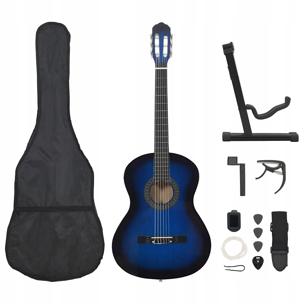 vidaXL 12-częściowy zestaw z gitarą klasyczną, niebieski, 4/4, 39"