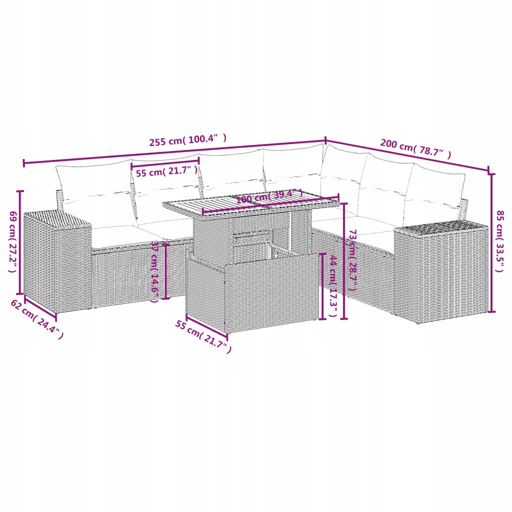 Ten zestaw wypoczynkowy będzie fantastycznym dodatkiem na Twoje podwórko, taras lub patio, tworząc wygodną i zachęcającą przestrzeń do spotkań z rodziną i przyjaciółmi oraz relaksu na świeżym powietrzu. Trwały materiał: rattan PE, znany również jako polirattan, to trwałe i łatwe w utrzymaniu tworzywo sztuczne, które wyglądem przypomina naturalny rattan. Jest lekki, łatwy w czyszczeniu i powszechnie stosowany do wyrobu produktów przeznaczonych do użytku na zewnątrz, ze względu na swoją trwałość i odporność na czynniki atmosferyczne.Regulowany blat: blat można podnieść, aby podwyższyć mebel, co pozwala zmienić stolik kawowy w stół jadalniany. Sprawdzi się on idealnie do przyjęcia gości lub spożywania posiłków na świeżym powietrzu.Wygoda siedzenia: te meble ogrodowe wraz z grubo wyściełanymi poduszkami oferują wygodę siedzenia.Zdejmowane poszewki z możliwością prania: poduszki siedziska posiadają zdejmowane pokrowce, które można prać.Modułowa konstrukcja: ten zestaw mebli ogrodowych jest modułowy, co zapewnia całkowitą swobodę w aranżacji i łatwość przestawiania. Warto wiedzieć:Aby utrzymać meble ogrodowe w dobrej kondycji, zalecamy zabezpieczenie ich wodoszczelnym pokrowcem.