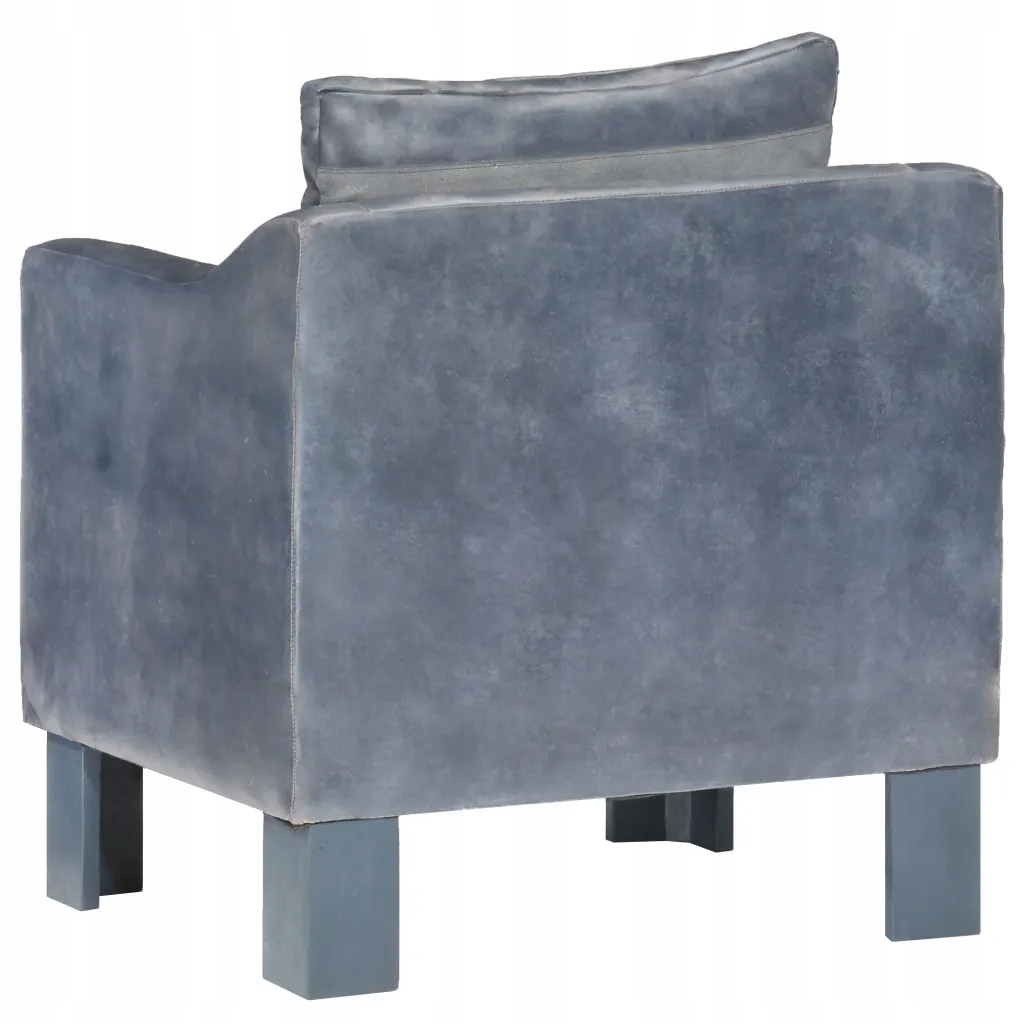 vidaXL Fotel klubowy, szary, prawdziwa skóra