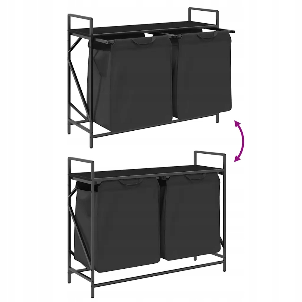 Kosz na pranie to pojemne i wygodne rozwiązanie do przechowywania, a wysuwane torby ułatwiają uporządkowanie prania. Sortownik do prania: Ten organizer zaprojektowano tak, aby pomieścić dużą ilość prania na worek. Pomaga on posegregować ubrania według koloru lub rodzaju materiału, utrzymać porządek w pralni, a także przechowywać zabawki i inne rzeczy.Wygodne, wysuwane worki na pranie: Wyjmowane worki na pranie są wyposażone w uchwyty do wysuwania oraz zapięcia na rzepy, co umożliwia łatwe odczepianie i wyciąganie. Wzmocnione dolne panele pomagają zachować kształt torby i zapobiegają jej odkształcaniu.Solidna i trwała konstrukcja: Ten kosz na pranie łączy stalową ramę z trwałym drewnem klejonym, zapewniając doskonałą wytrzymałość, odporność na zużycie i stabilność.Górna powierzchnia do przechowywania: Kosz na pranie posiada górną półkę, co stanowi praktyczne rozwiązanie, dzięki któremu najpotrzebniejsze rzeczy będą zawsze pod ręką. Idealne do przechowywania kosmetyków, detergentów do prania, płynów do zmiękczania tkanin, a nawet przedmiotów dekoracyjnych.Wszechstronny i wielofunkcyjny: Idealny do pralni, łazienki lub sypialni, ten zestaw łączy w sobie funkcjonalność ze stylem, pomagając utrzymać porządek i organizację w domu, a jednocześnie uzupełniając różnorodne motywy dekoracyjne. Ostrzeżenie:Aby zapobiec przewróceniu się produktu, należy przymocować go do ściany za pomocą dołączonych elementów.