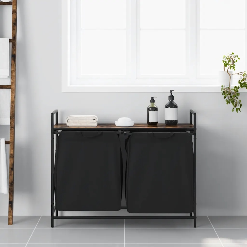 vidaXL Kosz na pranie 2 przegrody z półką, przydymiony dąb