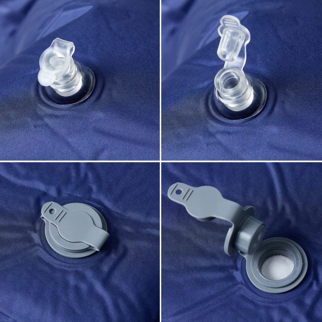 Samopompujący materac kempingowy jest praktyczny i wygodny, dzięki czemu idealnie sprawdzi się podczas aktywności na świeżym powietrzu. Trwałość i wodoodporność: matę samopompującą wykonano z pianki i tkaniny z powłoką z PVC, dzięki czemu jest trwała, odporna na wodę i warunki atmosferyczne, a także łatwa w czyszczeniu – wystarczy ją przetrzeć wilgotną ściereczką.Łatwość użycia: samopompująca mata kempingowa jest wyposażona w powiększony zawór, który umożliwia szybkie i łatwe napełnianie oraz opróżnianie. Po otwarciu zaworu mata napełni się powietrzem, powodując rozszerzanie się pianki. Po użyciu możesz ją zwinąć, aby spuścić powietrze.Wygoda: samopompujący materac kempingowy posiada wypełnienie z pianki memory, która zapewnia doskonałe wsparcie i izolację od zimnej podłogi. Zawiera również wbudowaną poduszkę, która pomaga złagodzić nacisk na kark.Możliwość połączenia: nadmuchiwany materac można przymocować do drugiego materaca, aby stworzyć podwójne miejsce do spania.Możliwość przenoszenia: materac turystyczny jest lekki i po zwinięciu można go wygodnie schować w poręcznej torbie transportowej. Nie zabiera zbyt dużo miejsca, dzięki czemu jest wygodny do zabrania w podróż, na piknik, na wędrówkę i na kemping. Warto wiedzieć:Materac należy prać wyłącznie ręcznie i trzymać z dala od ostrych przedmiotów.