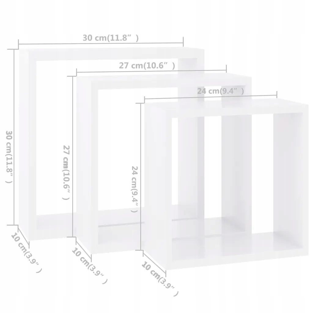 Zestaw 3 półek ściennych został zaprojektowany tak, by stać się głównym punktem dowolnego pomieszczenia. Kostki wykonano z MDF, dzięki czemu są stabilne i trwałe. Za sprawą niewidocznego systemu mocowań te półki narożne są łatwe w montażu i idealnie sprawdzą się do umieszczenia przedmiotów takich jak nagrody, książki, zbiory kolekcjonerskie, ozdoby itp. Półki pasują do większości wnętrz i łatwo zmieniają pustą ścianę w piękną ozdobę!